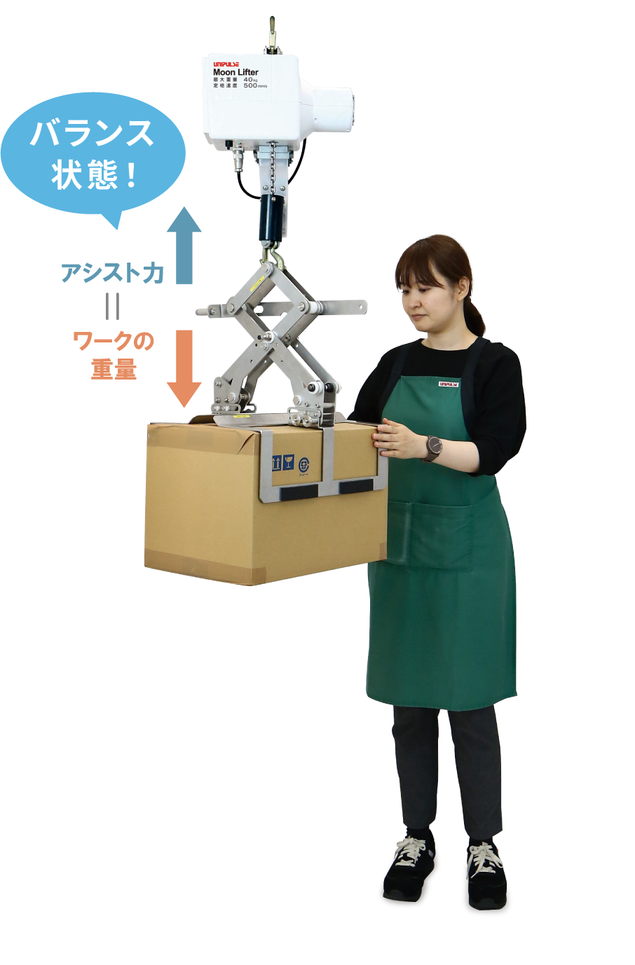 ワーク重量が0㎏に感じられるように