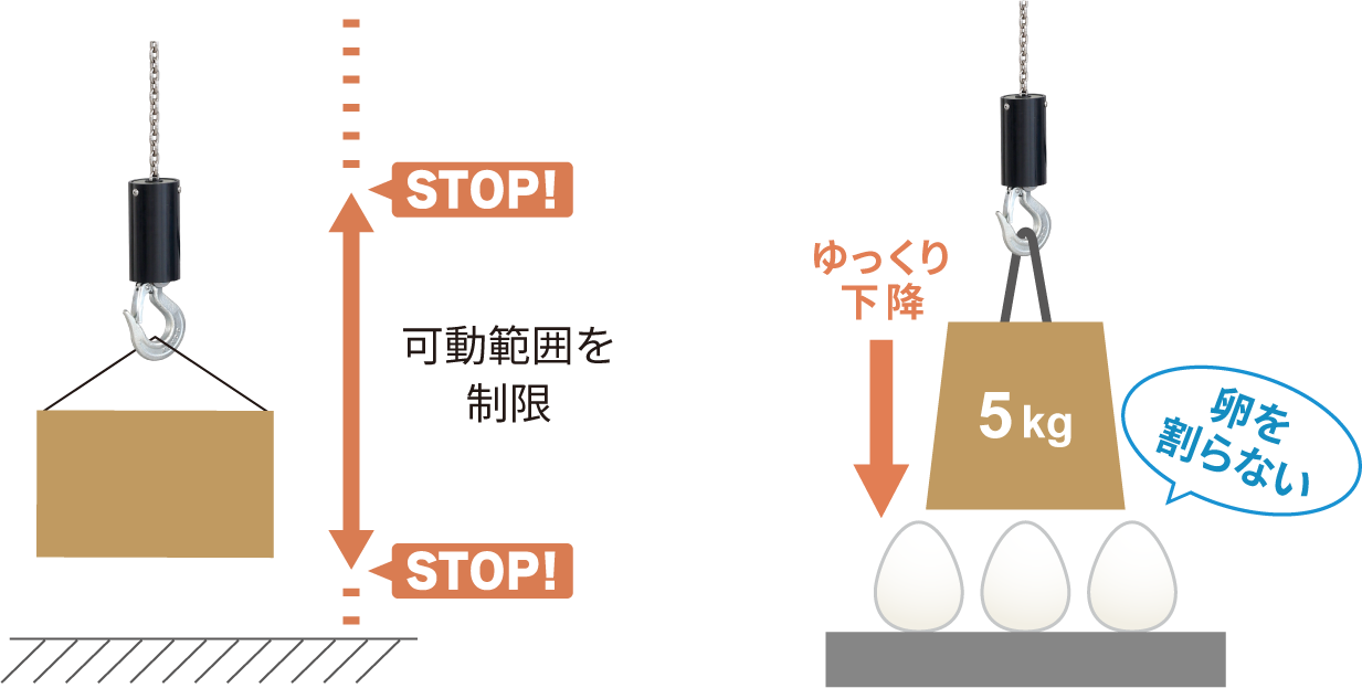 ●接地を検知するまでゆっくりと下降など可動範囲の
