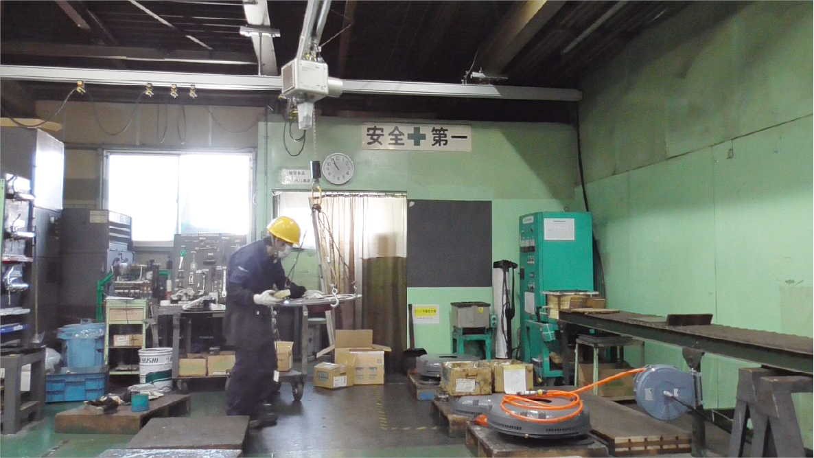 30kgから60kg程度の部品を作業台に載せたり、台車に載せ替えたりする作業に使用しています。