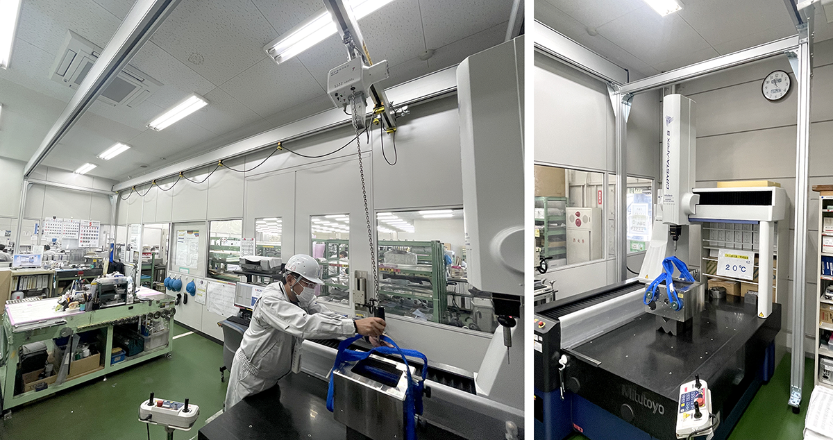 また三次元測定機にゆっくりワークをセットする作業もかなり楽になり、ワークの姿勢もセットしながら微調整できるようになりました。