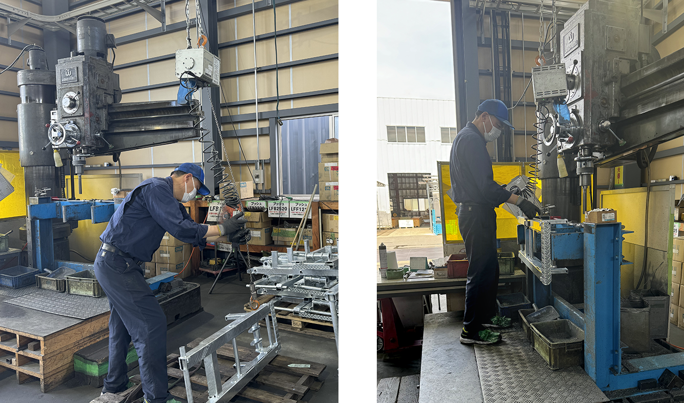 金属部品の搬送は1日に20~30回ほど行うため、男性の作業員でも大変な作業です。
