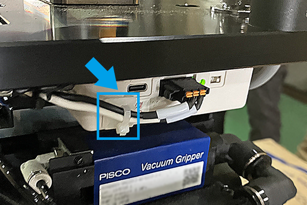 真空グリッパから配線が飛び出しており、ワークに引っかかってしまうことがありました。