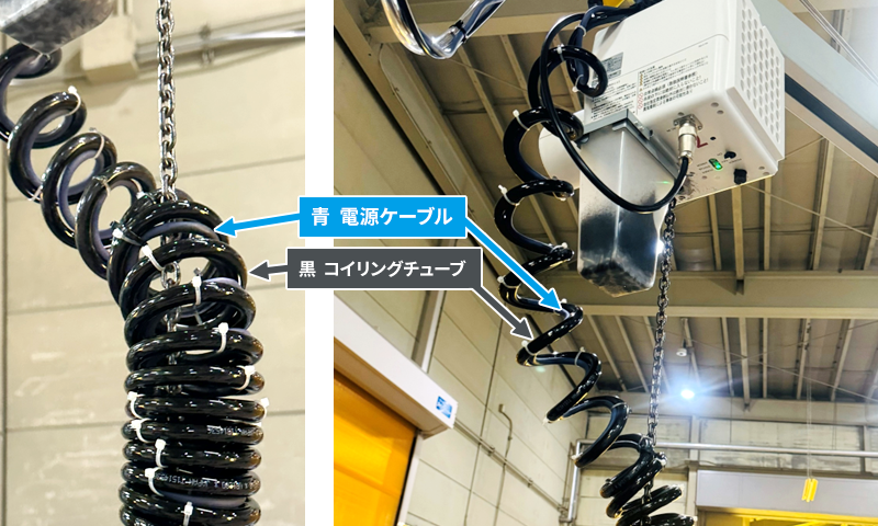 ムーンリフタは上下に昇降しますので、電源ケーブルもコイリングチューブ同様に伸縮性を持たせるようにすると良いと思います。
