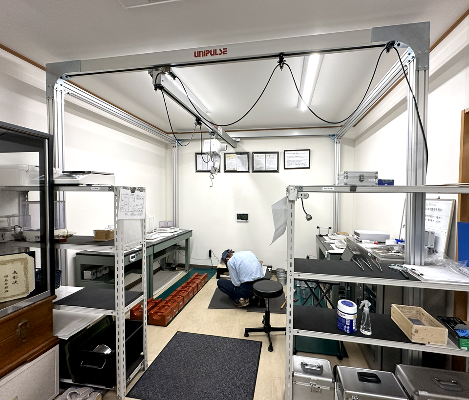 JCSS校正室は部屋を変えてしまうと変更の申請を行う必要があるので、現状の校正室に合わせた設置環境を構築することが必須でした。寸法を自由に選択できるやぐらでムーンリフタをフル活用できる室内に変えることができました。