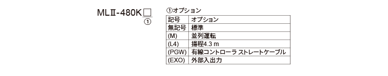 | ML-480K | 変更不可/変更不可 | 〇(4 A 電源) | 〇 | 〇 (3.95 m) |